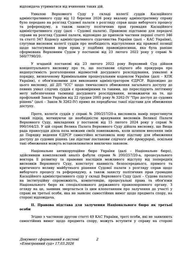 Я нещодавно писав про передачу цієї справи до Судової палати з розгляду справ щодо виборчого процесу та референдуму, а також захисту політичних прав громадян Касаційного адміністративного суду.