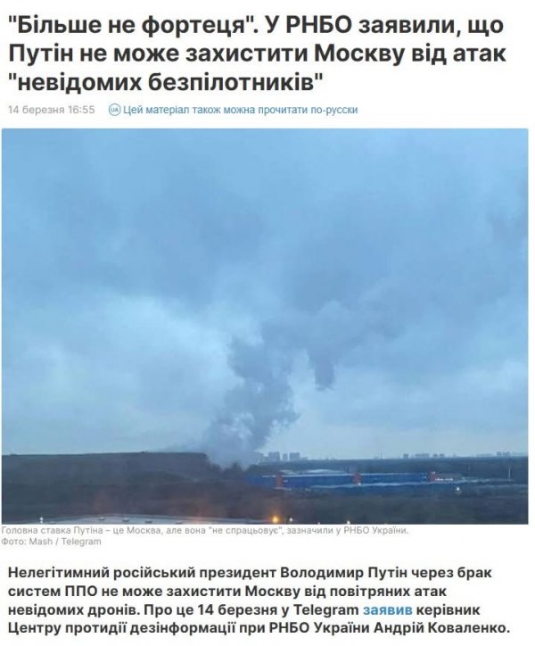 2. Атака Москви в ніч на 14 березня 2025 року. До цього, 11 березня на Москву летіли близько 400 безпілотників – не долетів жоден; ми не брали участі в тій акції. 14 листопада з 24 наших безпілотників до Москви долетіли 9. Знову ж таки – в інтернеті повно інформації з цього приводу, і навіть наше РНБО про це написало.