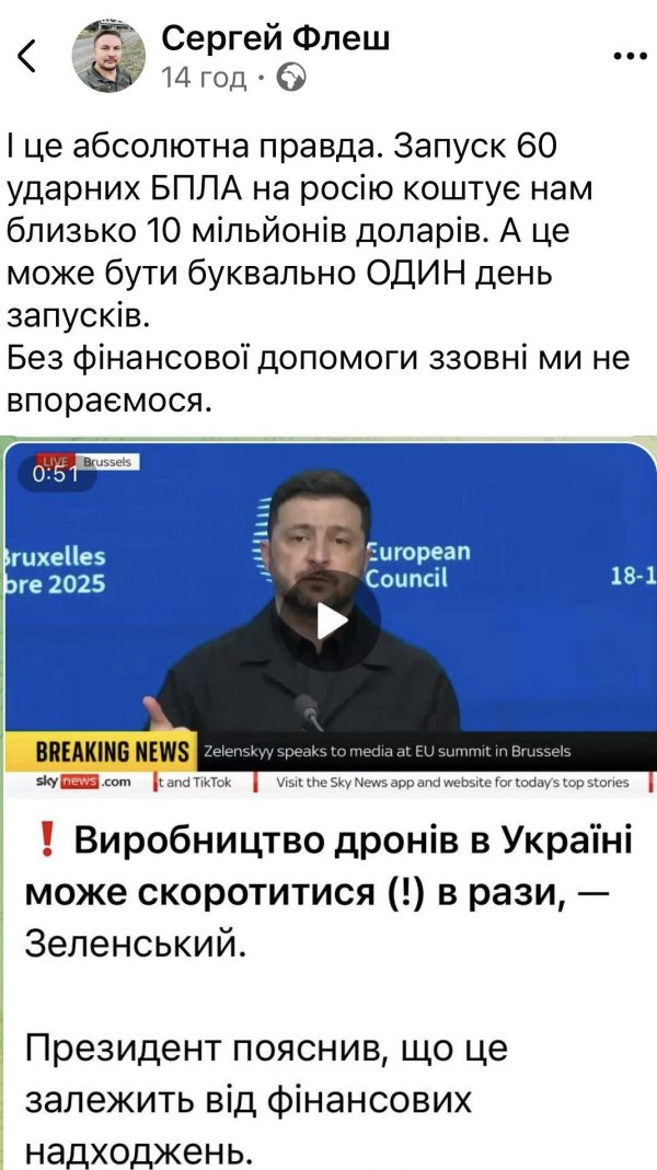 10 млн доларів, каже шановний Сергей Флеш, за 60 дронів. Десь по 167 тис доларів за дрон.