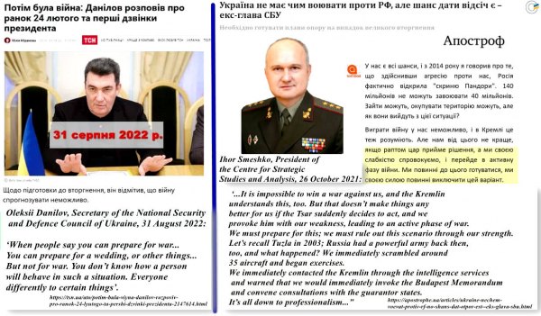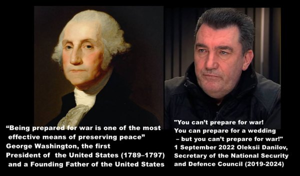 Oleksii Danilov, Secretary of the National Security and Defence Council of Ukraine, 31 August 2022: 'When people say you can prepare for war... You can prepare for a wedding, or other things... But not for war. You don't know how a person will behave in such a situation. Everyone reacts differently to certain things'. (https://tsn.ua/ato/potim-bula-viyna-danilov-rozpoviv-pro-ranok-24-lyutogo-ta-pershi-dzvinki-prezidenta-2147614.html)